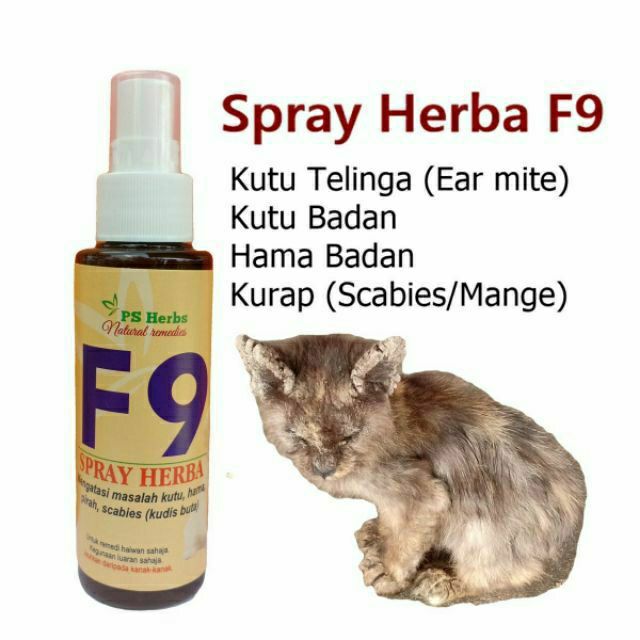 Spray Herba F9 Ubat Kutu Kucing Kutu Telinga Earmite Hama Kurap Scabies Mange 100ml By Ps Herbs Shopee Malaysia